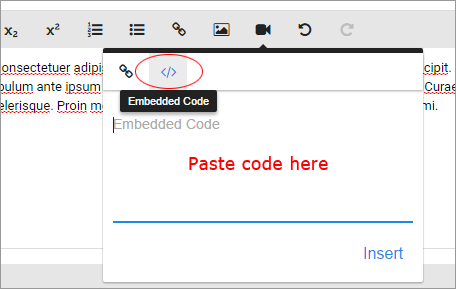 21. Select "Embedded Code" and paste the embed code in large box in the “Description” box: