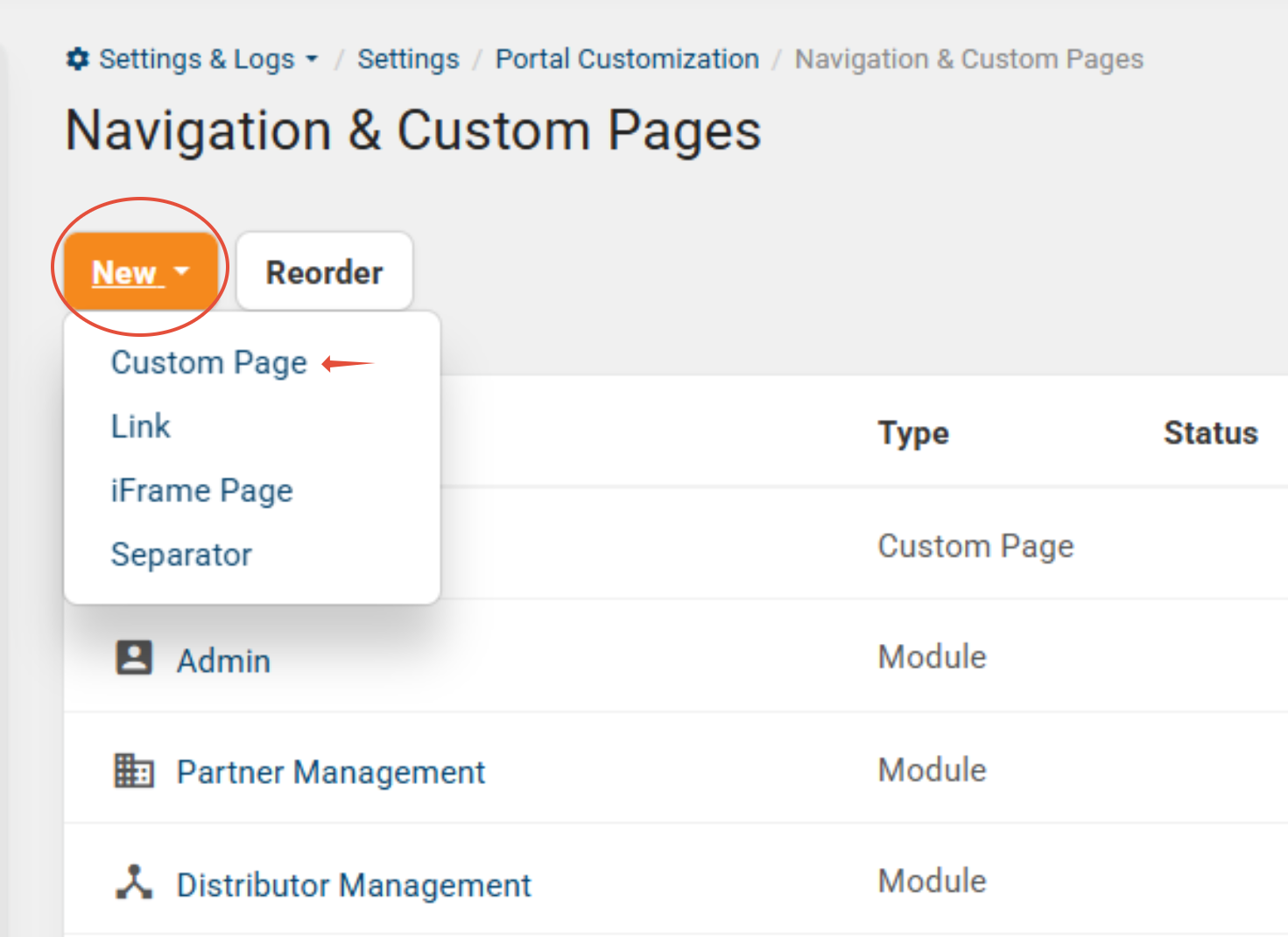 - Go to Settings > Portal Customization > Navigation & Custom Pages.