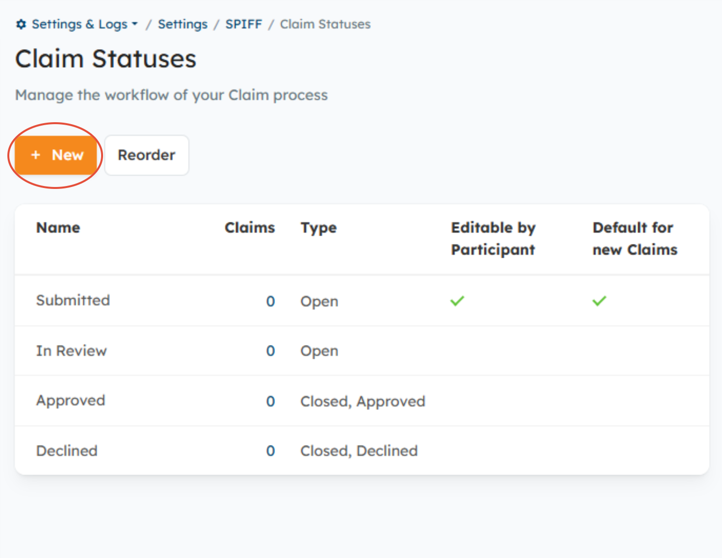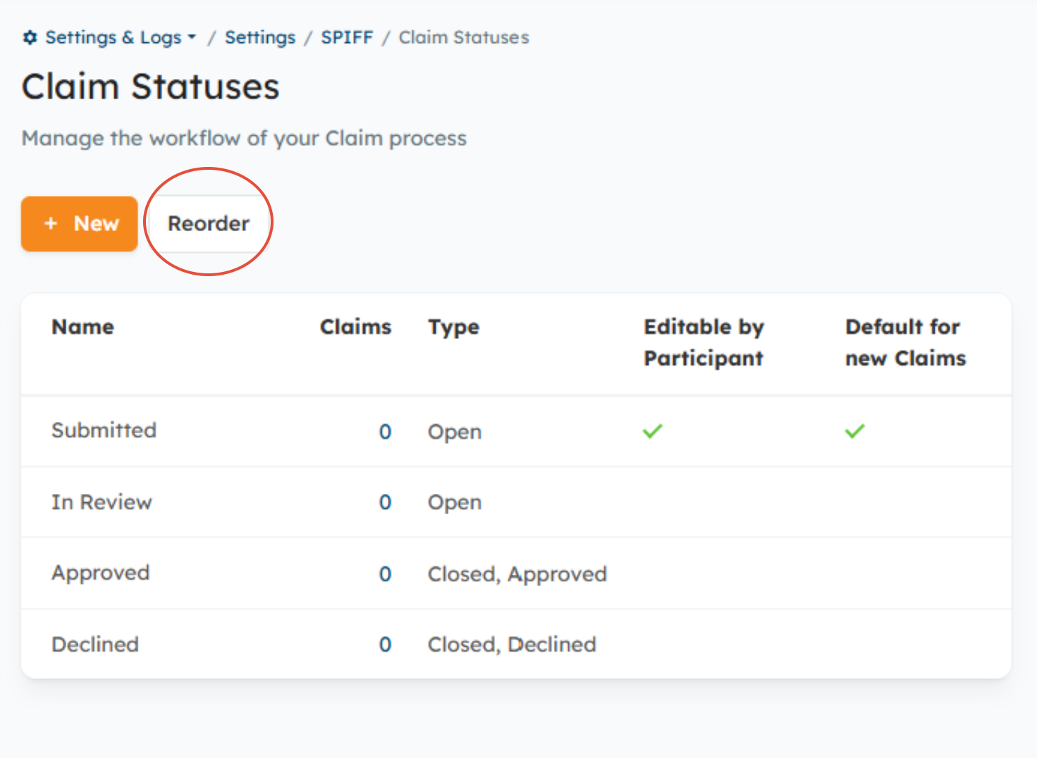 1. Go to Settings >  SPIFF > Claim Statuses.